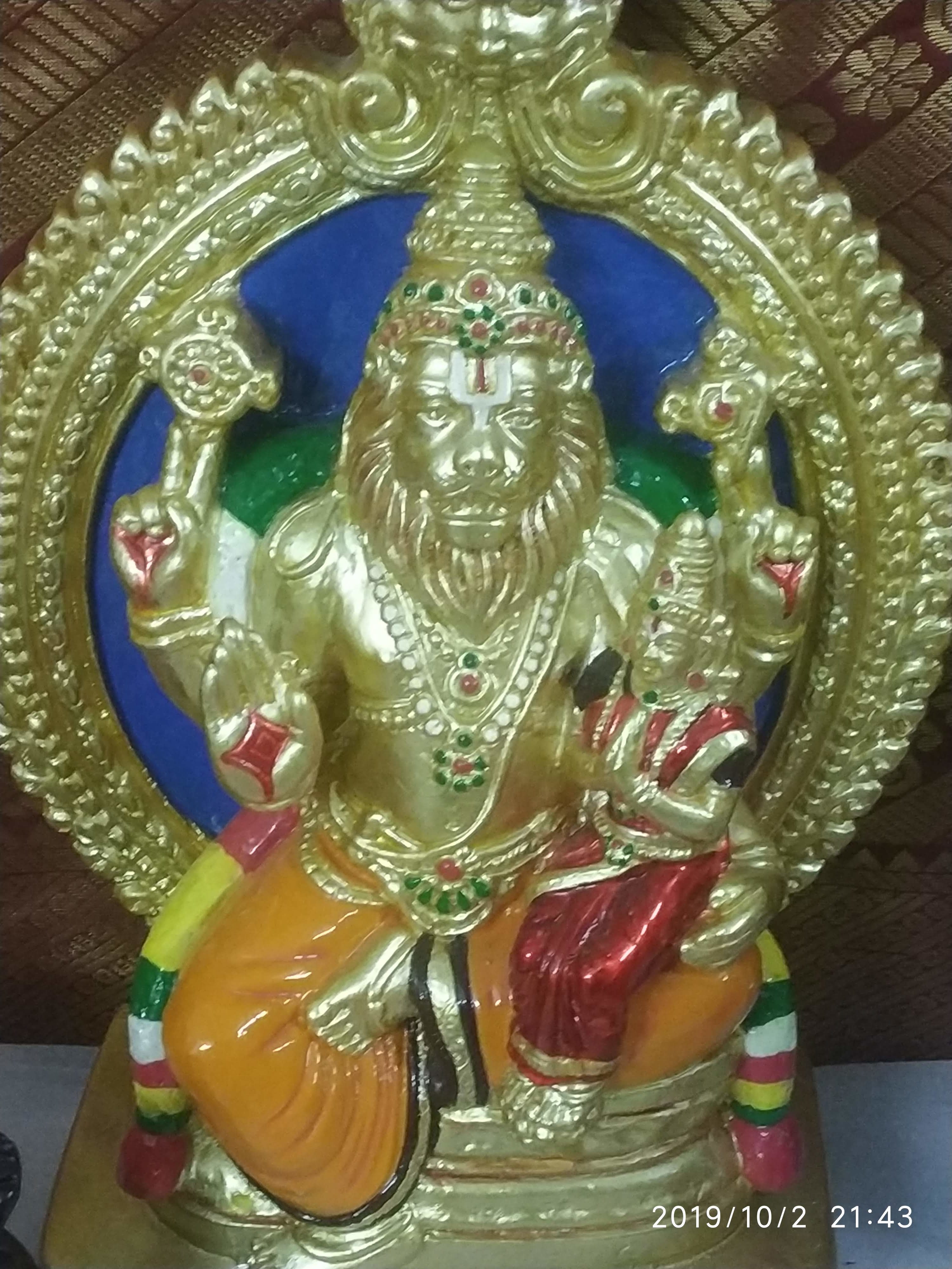 Lord Shri Lakshmi Narsimhan- He is the 4th incarnation of Lord Vishnu. He took the form of Half lion – half man to save his Devotee Bhakt Prahlad from atrocities of self proclaimed God -his own father. He is the most fierce avatar of Lord Vishnu.